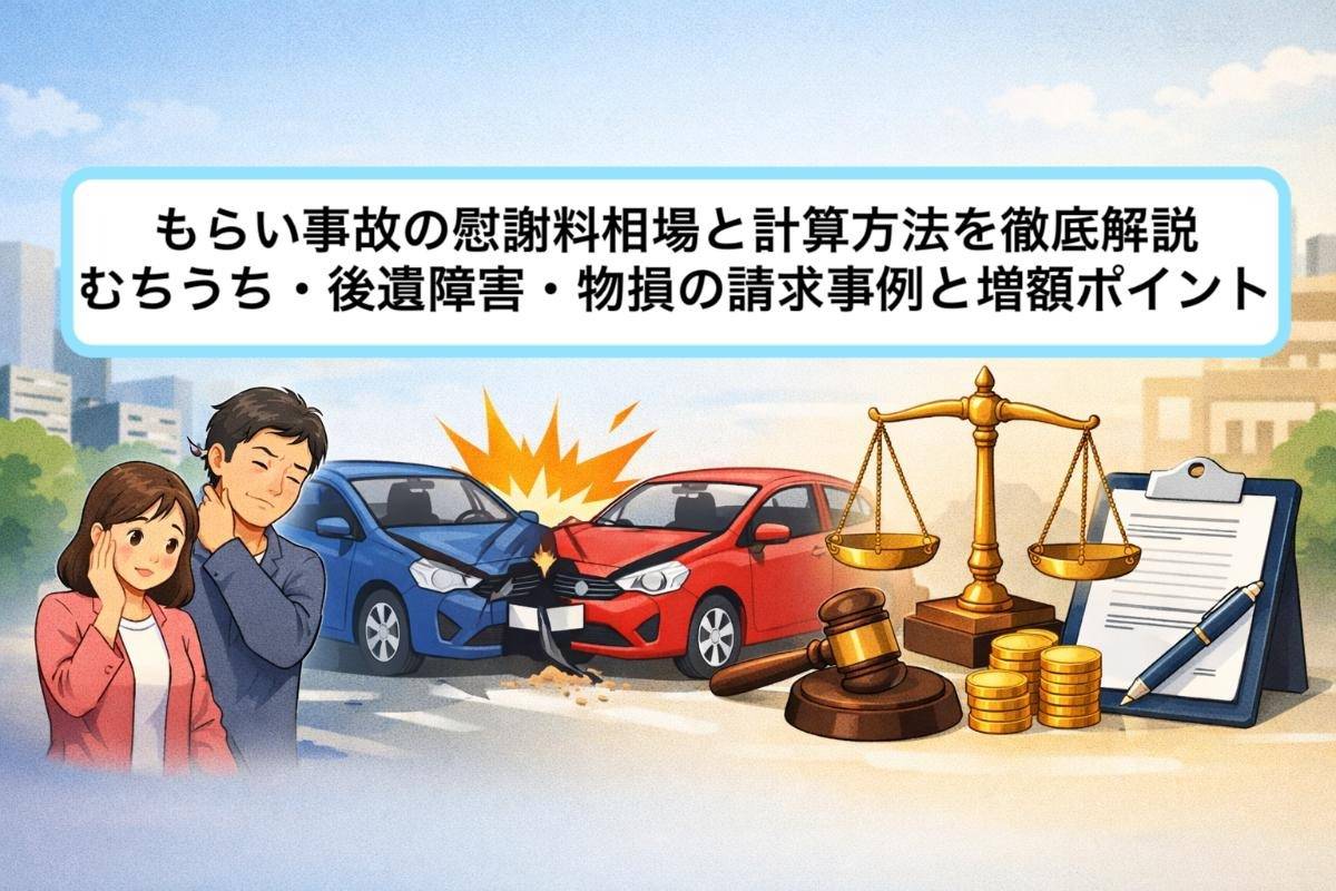 もらい事故の慰謝料相場と計算方法を徹底解説|むちうち・後遺障害・物損の請求事例と増額ポイント